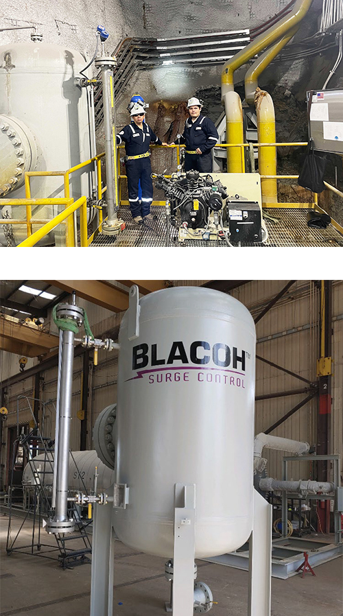 Based on operating needs, the system required the installation of two suppressor tanks, one on the El + 1869.70 m level (underground), and the other on arrival at the surface of the natural terrain. According to the analysis, it was also proposed to eliminate the check valves in the 12in headers leaving only the valves in each of the pumps.