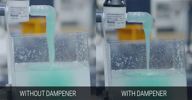 Peristaltic pumps discharge discrete quantities of fluid, resulting in cyclic variations in instantaneous flow rate. These variations cause pressure spikes or pulsations in the system. (Imagine rock-laden fluid slamming against pipe walls and ripping supports from their anchors—not fun). Pulsation dampeners help absorb these pressure spikes and smooth the fluid flow.