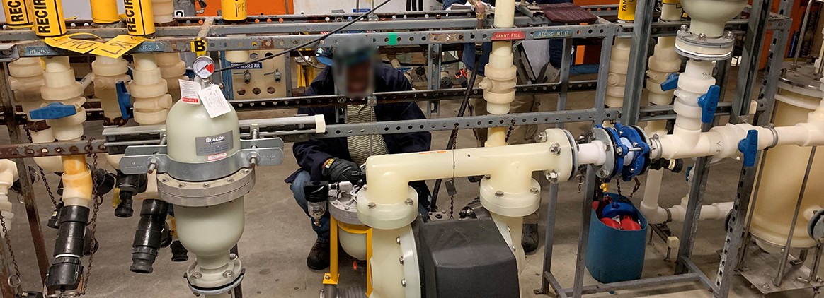 A chemical processing plant in the Boston area experienced a critical failure when the diaphragm on their AODD pump tore during operation. As a result, process fluid began escaping through the muffler, creating both a safety hazard and potential contamination issue.
